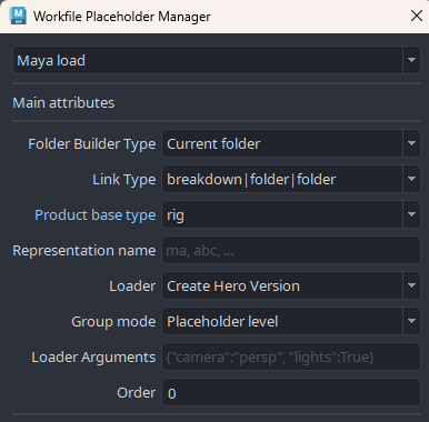 The Load Placeholder in maya (and presumably other DCCs) has a field to specify Product Base Type, but not Product Type:
