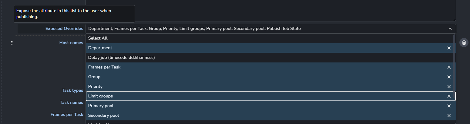When submitting usdrender nodes, the user is able to choose the renderer that it uses. Unfortunately the renderer limit group is not reflected in the submitted job. Our husk deadline plugin is set to use karma licenses by default, but if the artist wants to use arnold, then our limit groups will not reflect the usage and some renders will fail not being able to obtain a license. We could all render limit groups by default, but then that will use up a slot needlessly if the artist is not choosing to use that renderer.