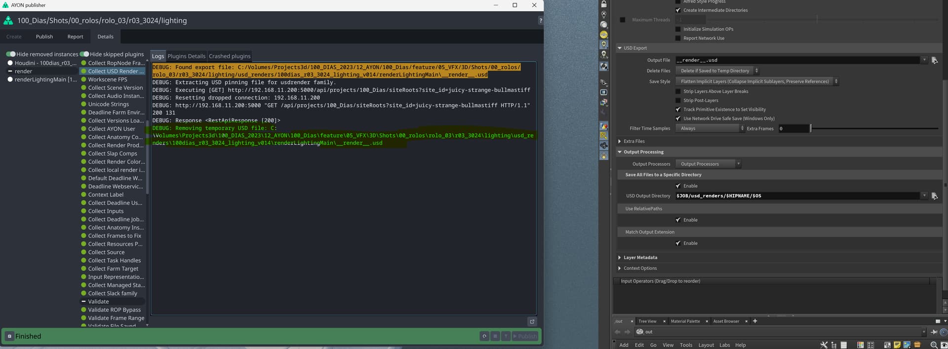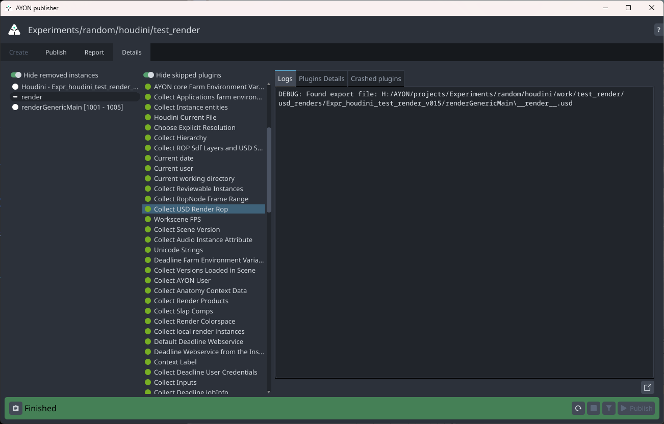 - I tried to save the render USD on my desktop for monitoring. The USD file appears there, but it is deleted right after the publish is completed.