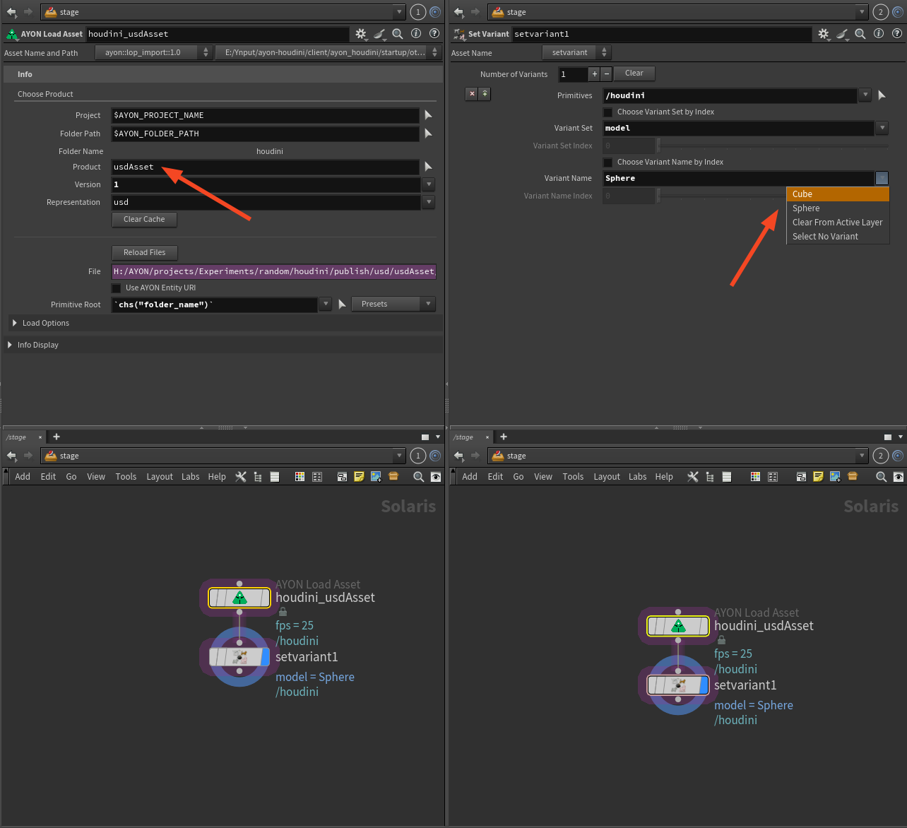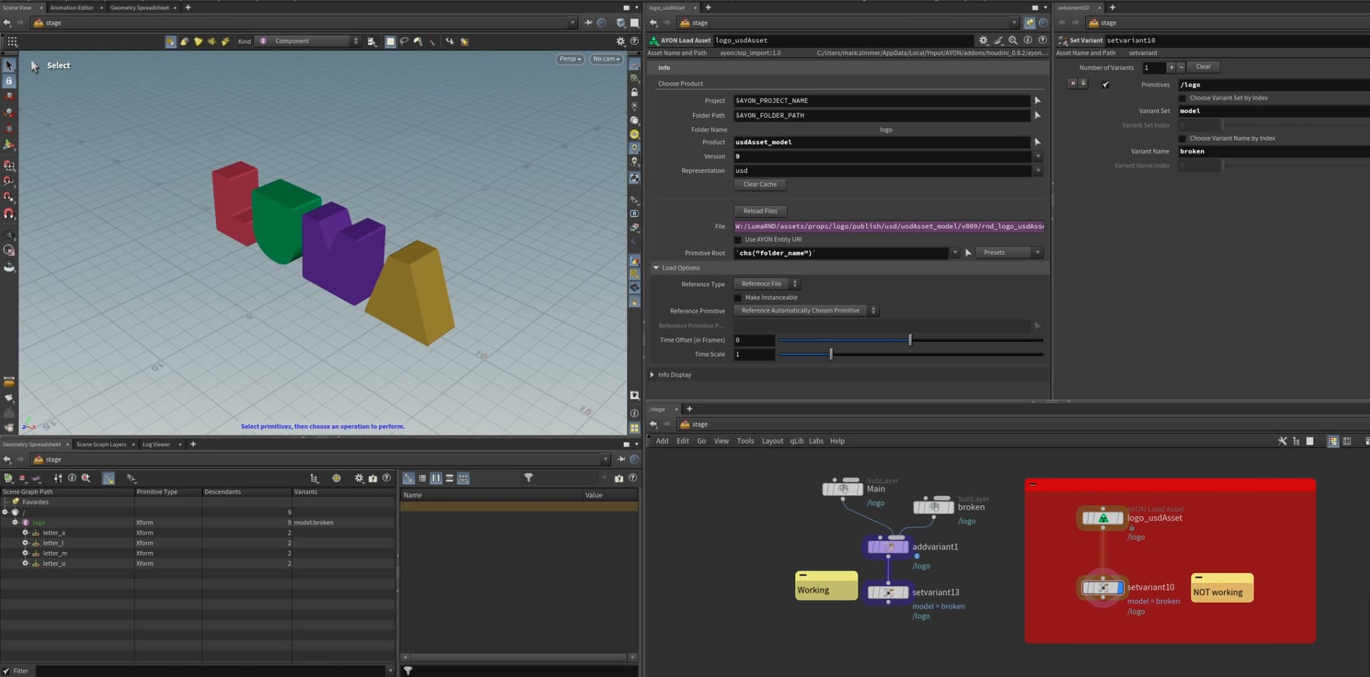 Been working through the variant publishing, but it appears to incorrectly set the variant. the “working” workflow is me manually adding them as a variant of each published model then setting the variant displays the “broken” model. Meanwhile, loading the usd asset through the ayon load asset and setting the variant does not. Any tips?