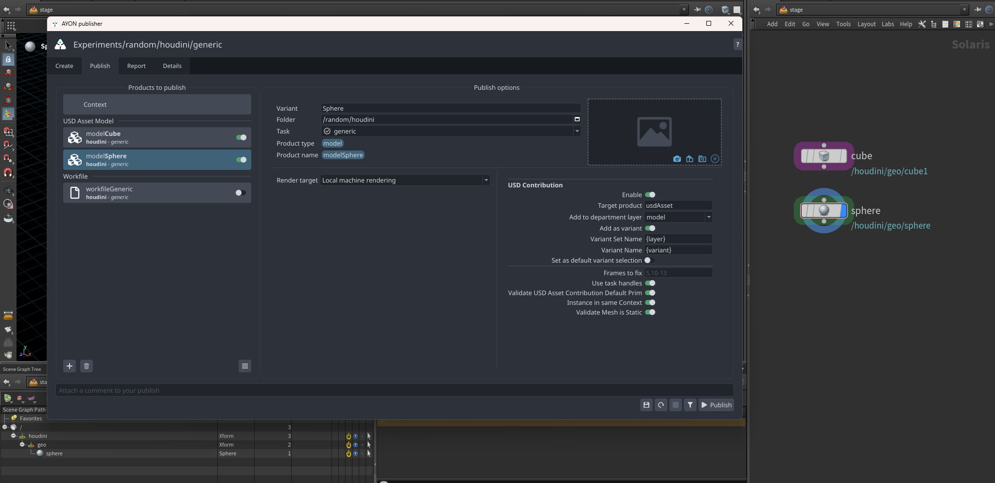 The Variant publishing in USD contribution workflow is really as simple as creating two separate models and publish them as model variant.