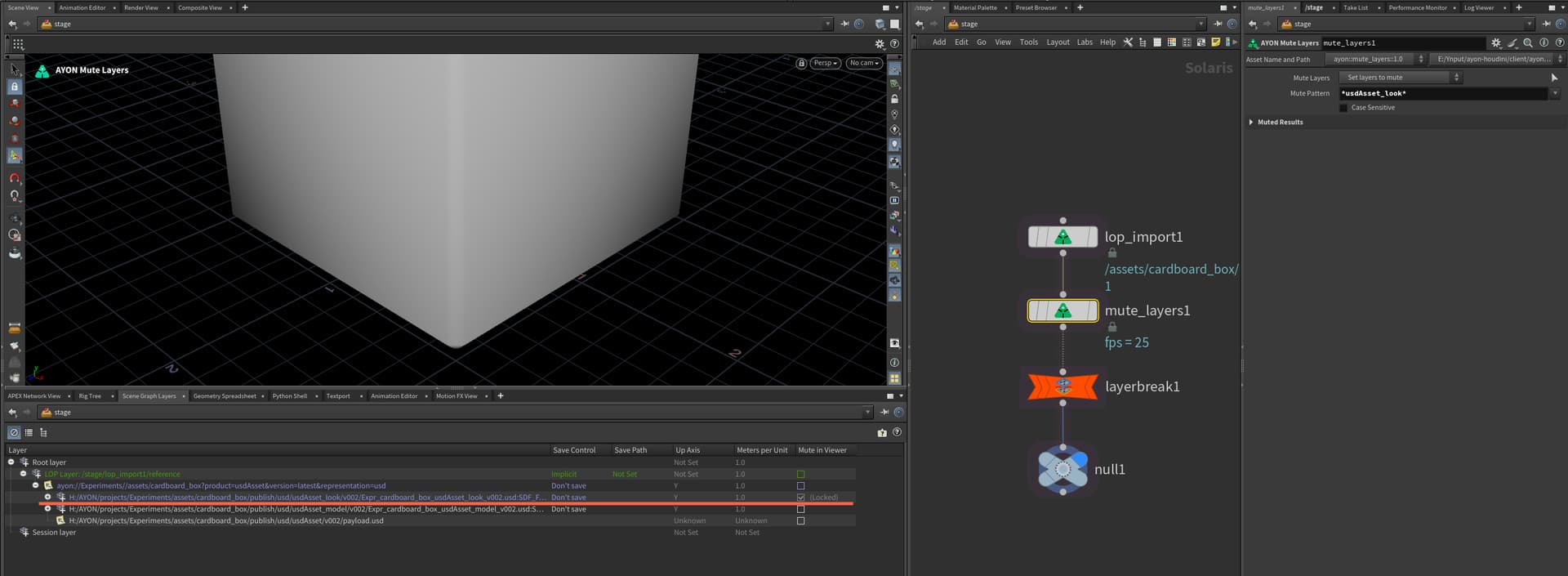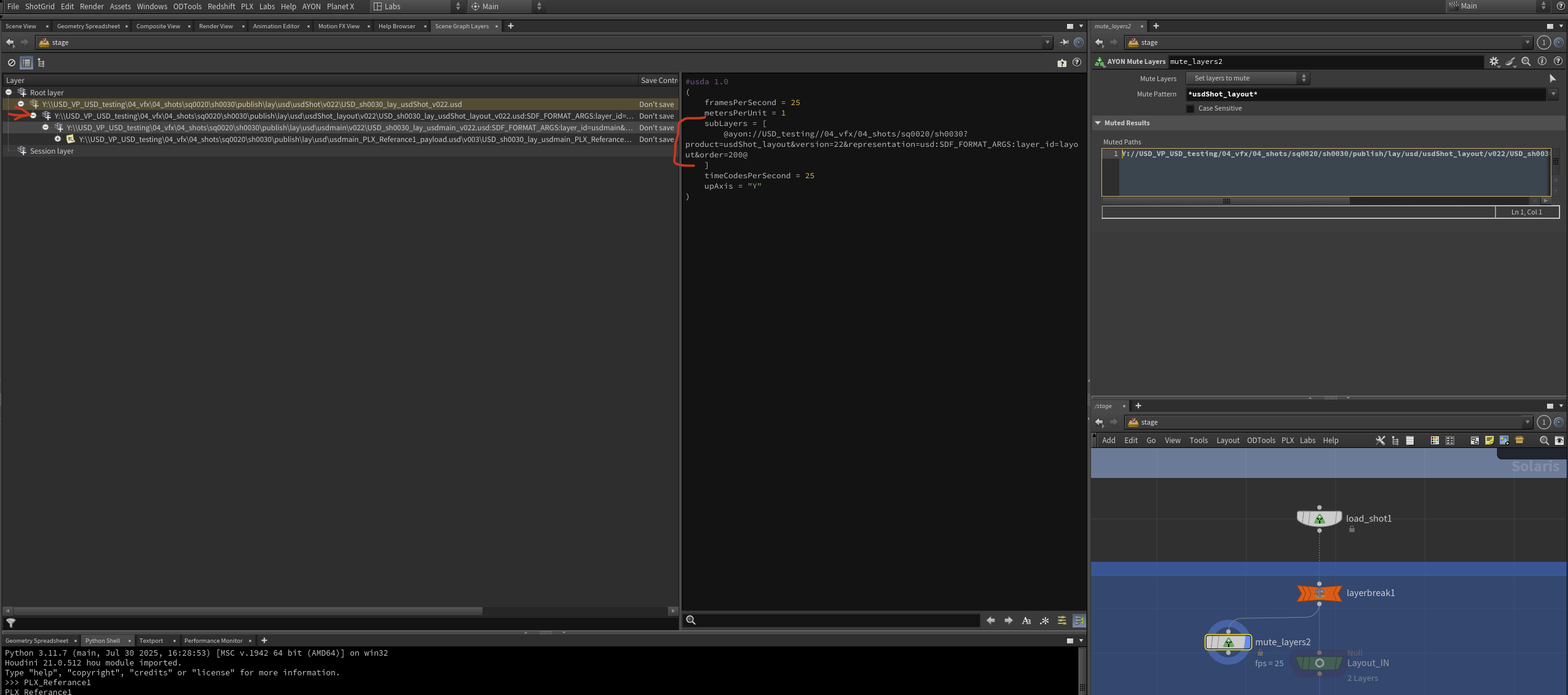 Houdini is unable to mute te root usd layer for a department, eg Layout, Lighting etc.