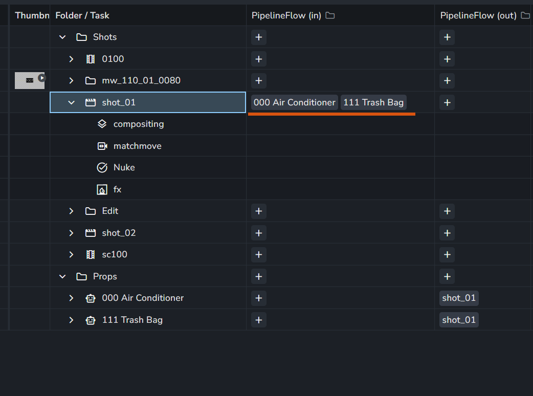 In my example below, my assets are used as inputs for the shot.
