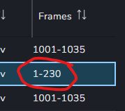 That means in the publish it should be 1–230, but in Browse Frames it should use the value from the shot (in this case 1001–1230).